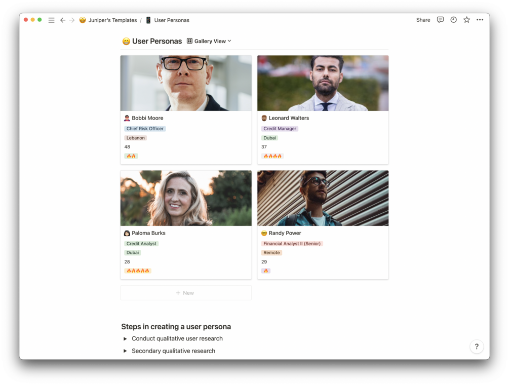 Juniper's User Personas for Notion (Fintech)